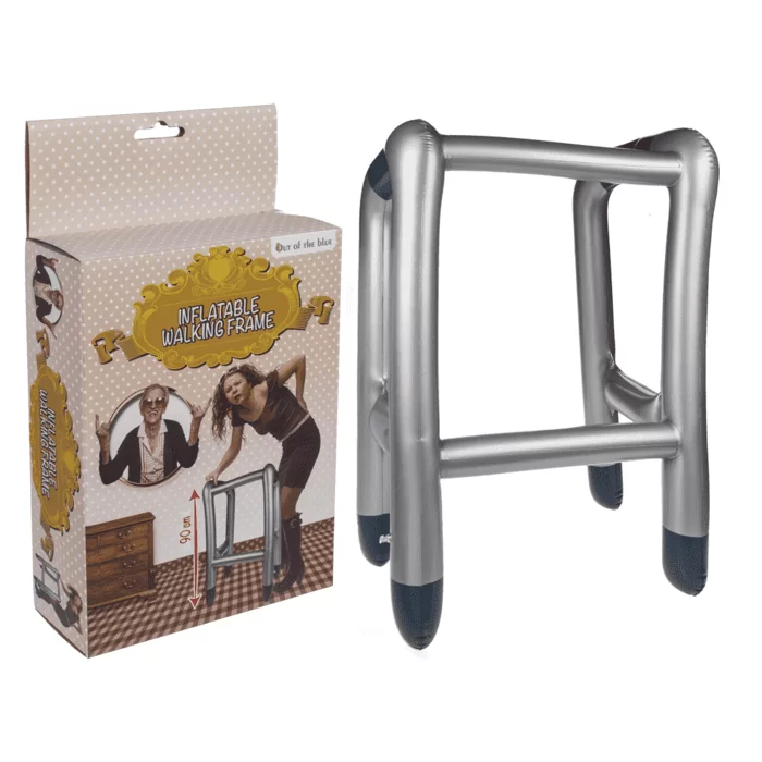 Omschrijving | Met het opblaasbare looprek kun je doen alsof je moeilijk kunt lopen. Het biedt natuurlijk niet voldoende steun om als echt looprek te gebruiken. Maar het is wel een fun cadeau voor iemand die een jaartje ouder wordt. Of gebruik het met carnaval en verkleed je als een oude opa of oma. Het looprek is opgeblazen ca. 90 cm hoog. |